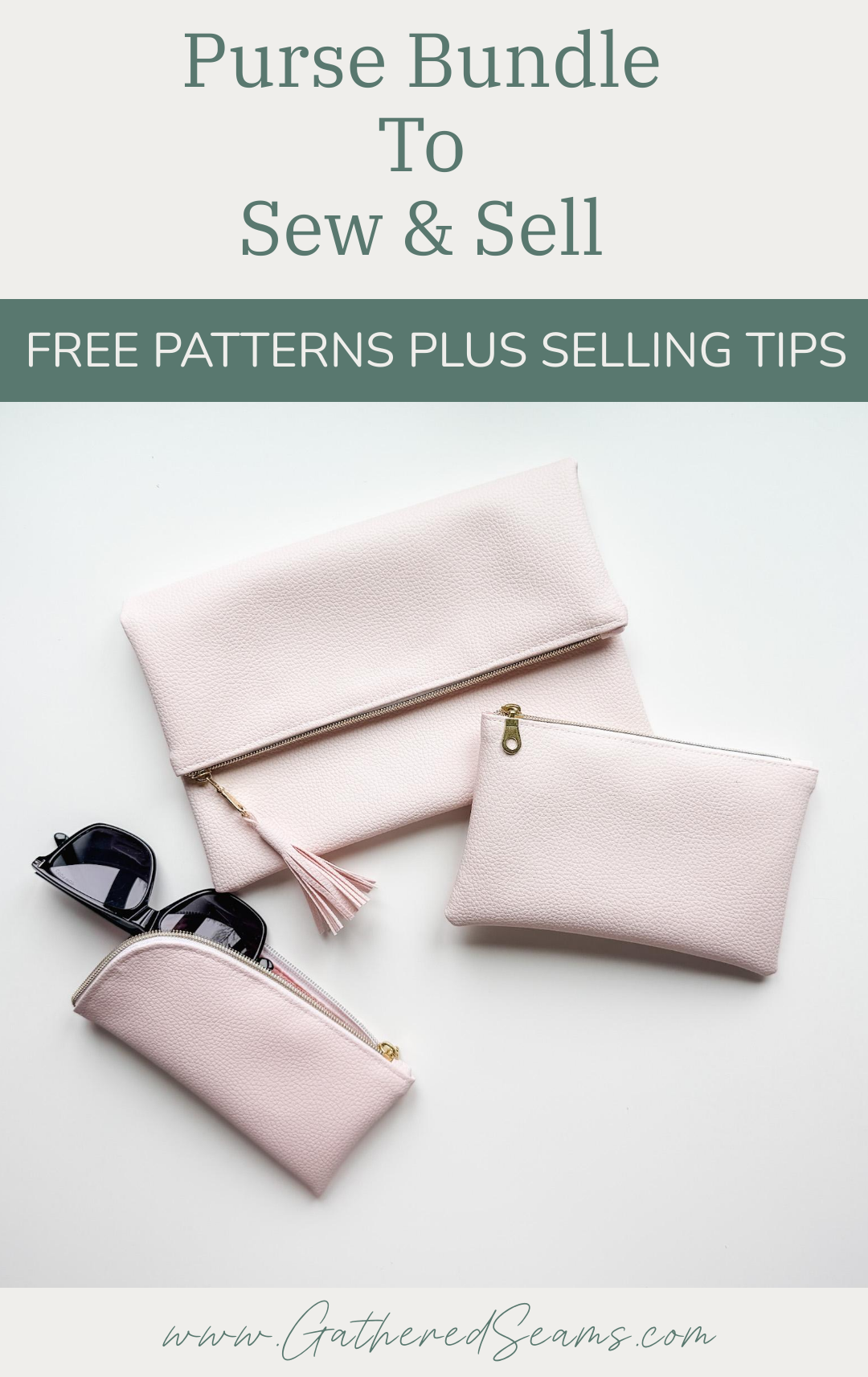 Bags and purses are good items to sew and sell. There are so many patterns to try, from beginner to advanced and many different markets you can target (e.g. school bags for students, diaper bags for new parents, etc.). This bundle is for a smaller bag, such as a clutch. A 3-piece bundle is ideal to think about when launching a new product because it ensures a new item has other items that customers can buy with it. As a business, you want products that work together to: Increase your UPT (units per transaction) – if you only sell clutch…