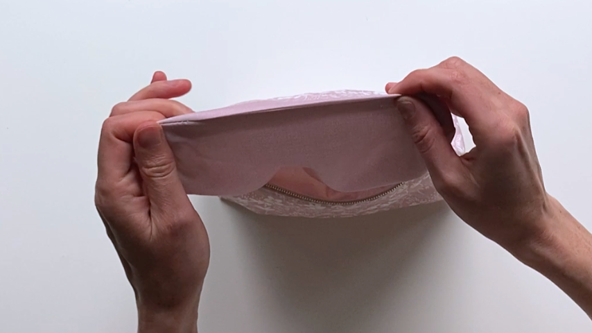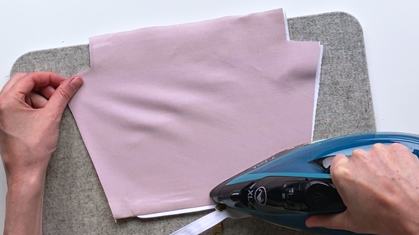 Fold the lining down, so the lining and outer piece are wrong sides together and iron along the top edge to press the lining into place.