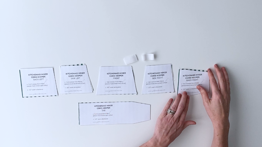 If you want to add extra structure to your cord keeper, you can also cut a set in fusible interfacing and fuse them to the wrong side of your fabric pieces.