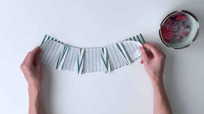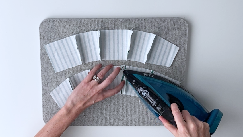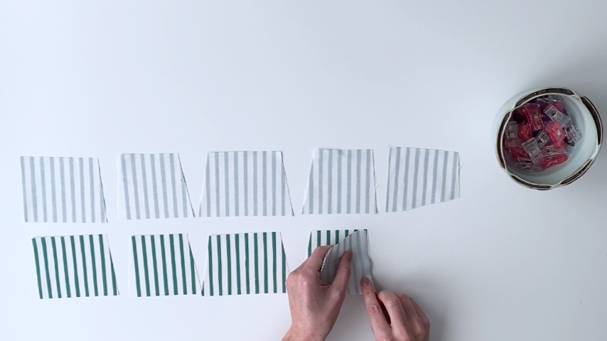 Line up your fabric pieces so that, left to right, you have: