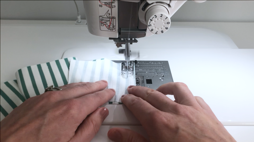 Turn the tube right side out, press the seams, then top stitch around all four sides, sewing about 1/4″ away from the edge.