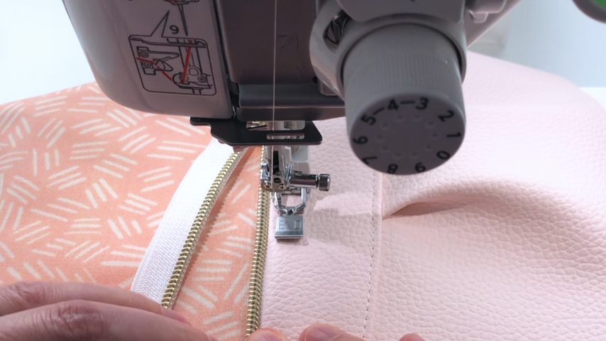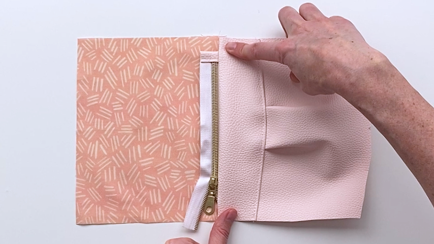 Repeat these steps to sew the other side of the zipper to the other outer piece and lining piece.