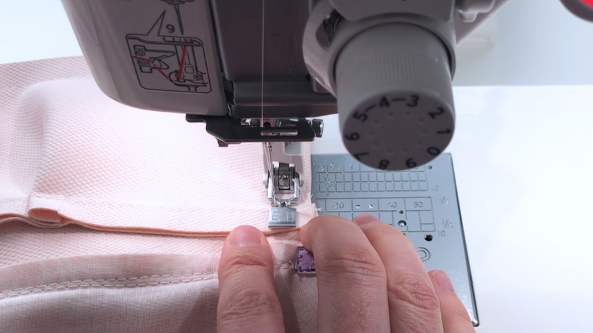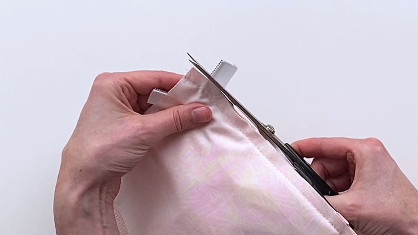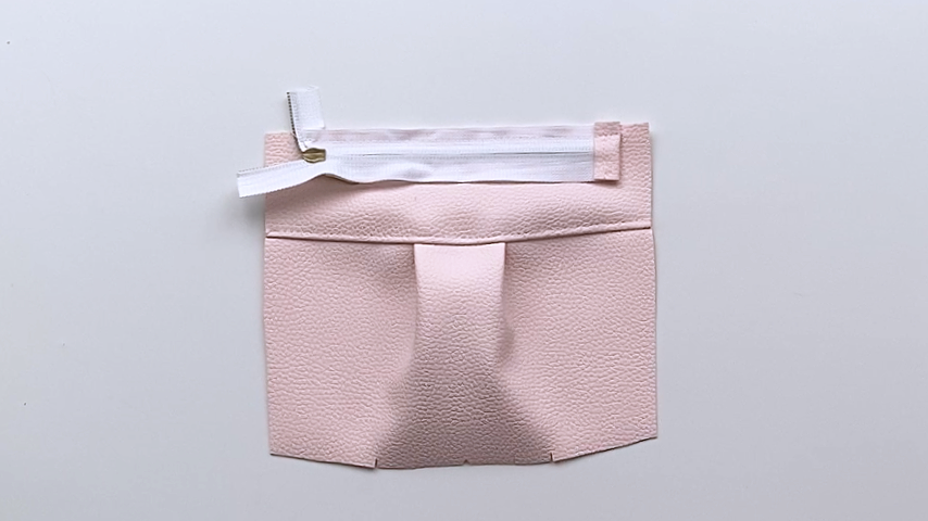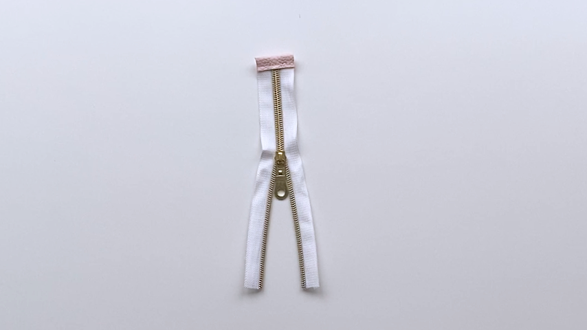 Fold the zipper tab over the closed end of the zipper and topstitch into place.