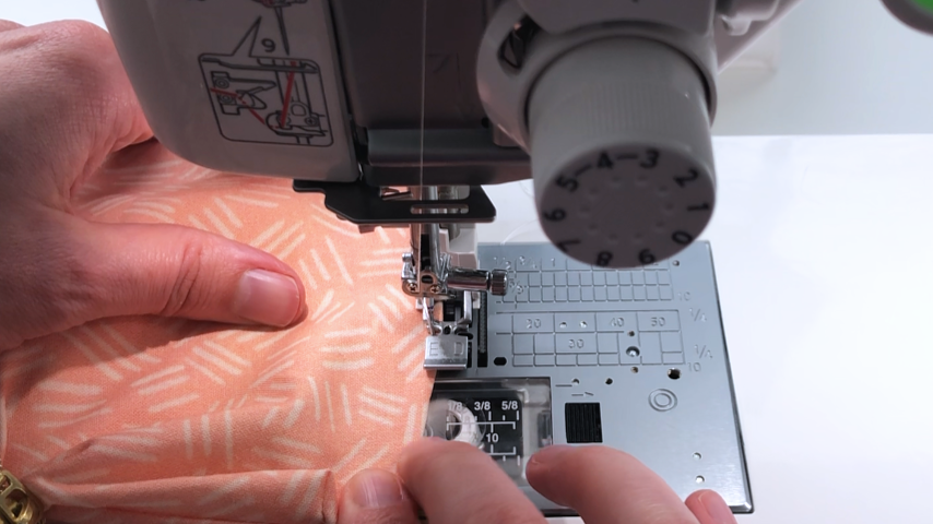 Fold the top panel up and ensure the seam allowance for both pieces is pushed up, so it’s behind the top panel (and not the bottom panel), then top-stitch along the bottom of the top panel to secure the seam allowance into place.