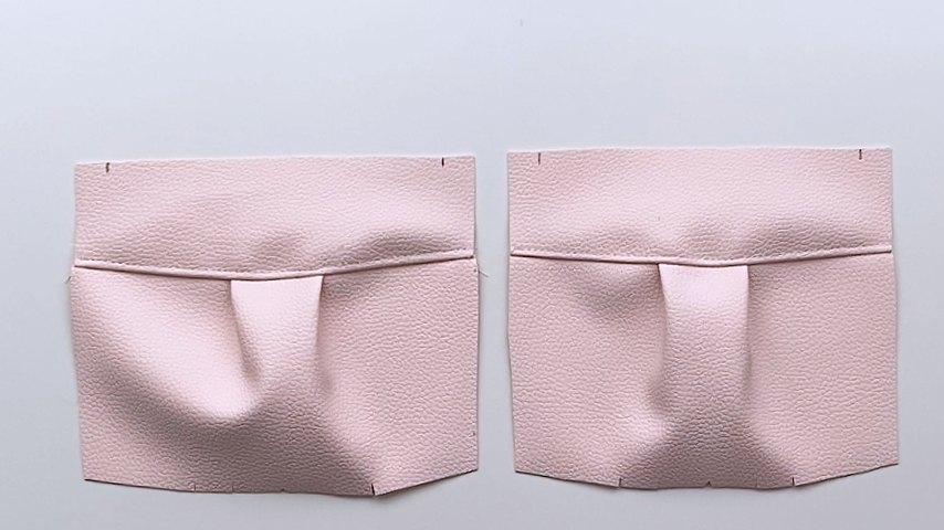 Adjust your pleats as needed to ensure your bottom piece is the same length as the bottom of your top piece (depending on the thickness/thinness of your material, you may need to let your pleats in or out a little).