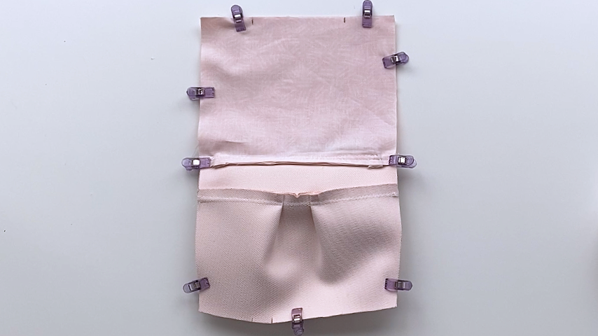 Begin by making small clips where the “pleat fold lines” are indicated along the top of the bottom panel pattern piece (or mark the lines on the right side of the fabric using a temporary fabric marker).