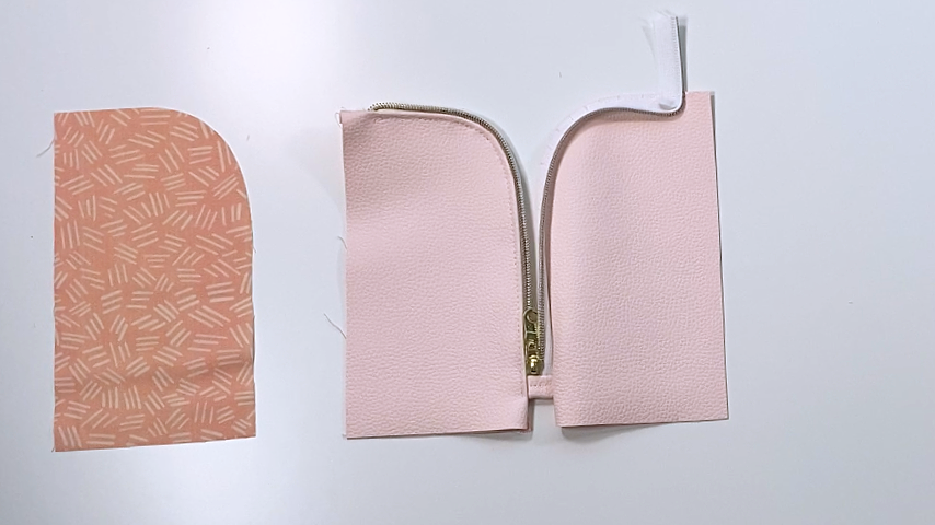 Repeat the steps to sew the lining to the zipper, trim the excess zipper, and topstitch.