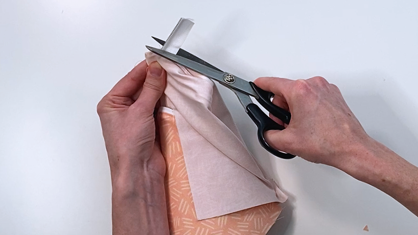 Snip V-shapes into your exterior fabric around the curve and trim back the seam allowance.