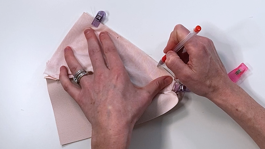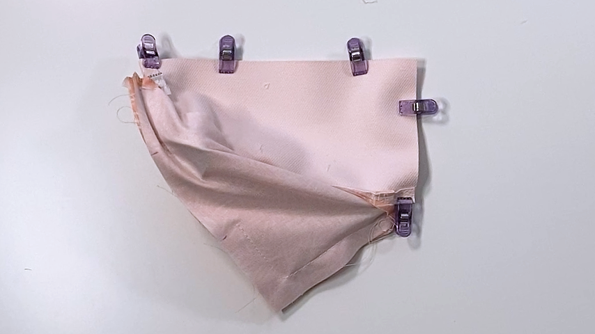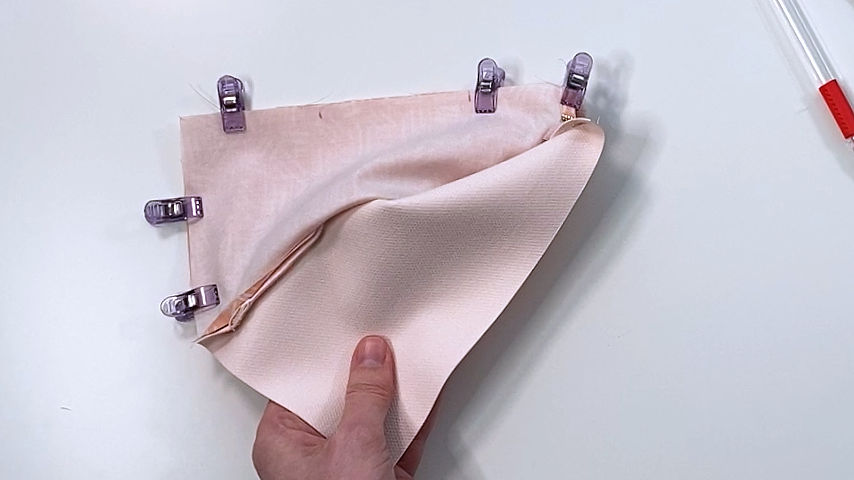 Now fold the lining out of the way and clip the exterior edges together.