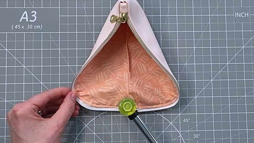 Be sure to cut the corners by each end of the zipper at an angle, to reduce the bulk.