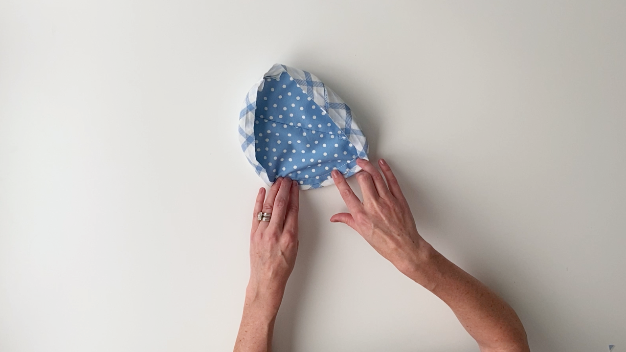Stretch your bowl cover to distribute the fabric evenly around the elastic.